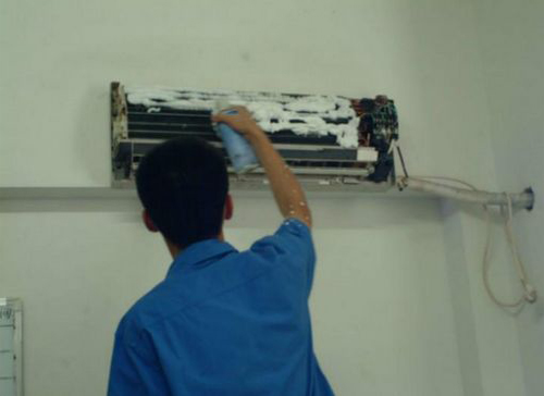 | 金川空调维修师傅给金川用户上门维修清洗空调。 |
